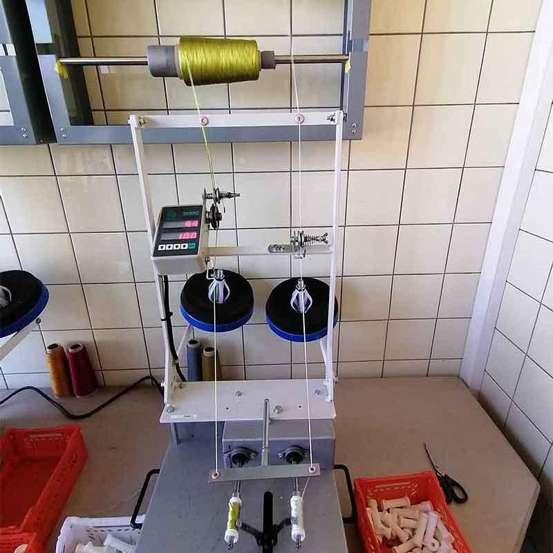 Drei teilautomatische Spulmaschinen sind hier die Helferlein.